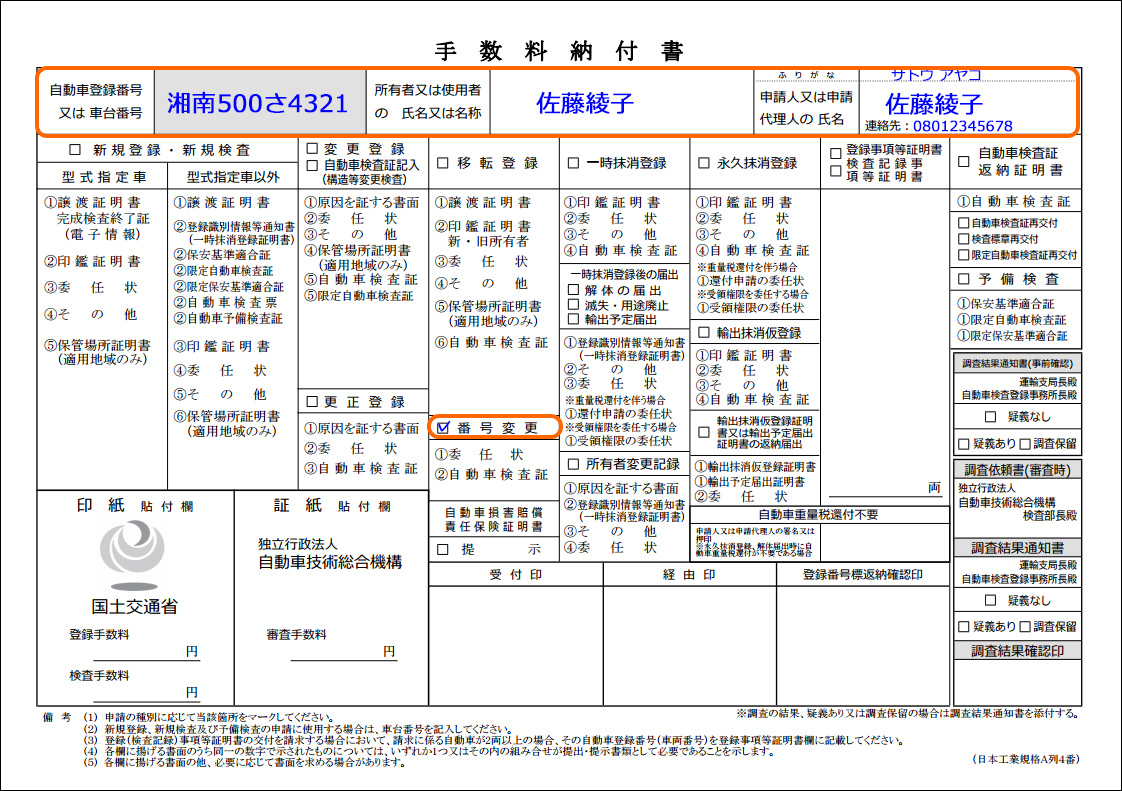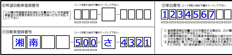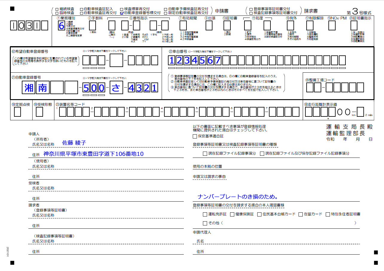 自動車登録番号標交付申請の記入例と解説