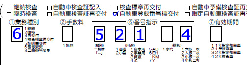 - ■自動車登録番号標交付:「チェック」 業務種別:「6」自動車登録番号標交付