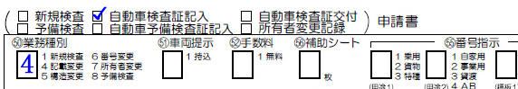 - ■申請内容:自動車検査証記入「チェック」 業務種別:記載変更「4」