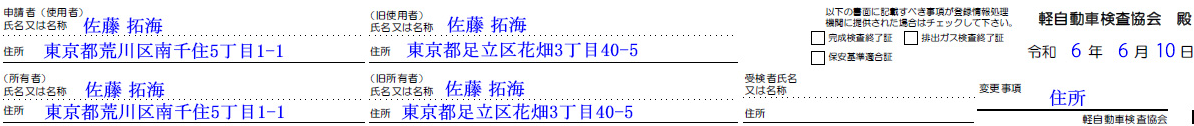 - ■(使用者)氏名及び変更なった住所 (所有者)氏名及び変更なった住所 ■(旧使用者)氏名及び変更前の住所 (旧所有者)氏名及び変更前の住所 ■変更事項:「住所」