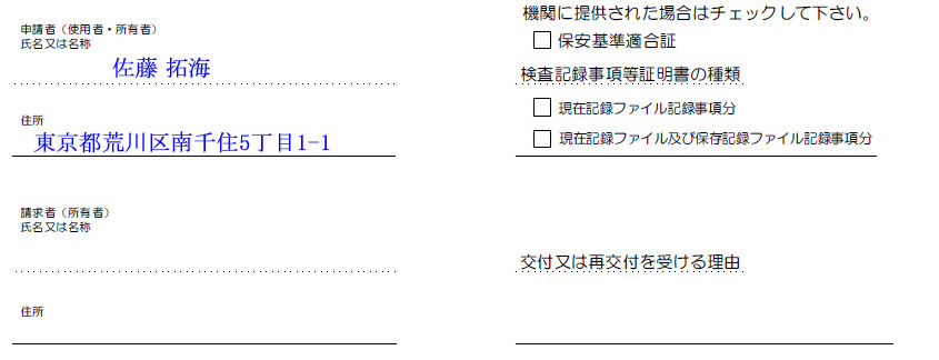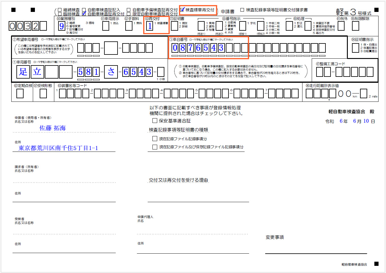 自動車検査証再交付申請書・検査標章再交付申請書の記載例と解説