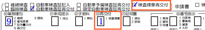 ■申請内容:自動車検査証再交付:「チェック」 業務種別:再交付「9」