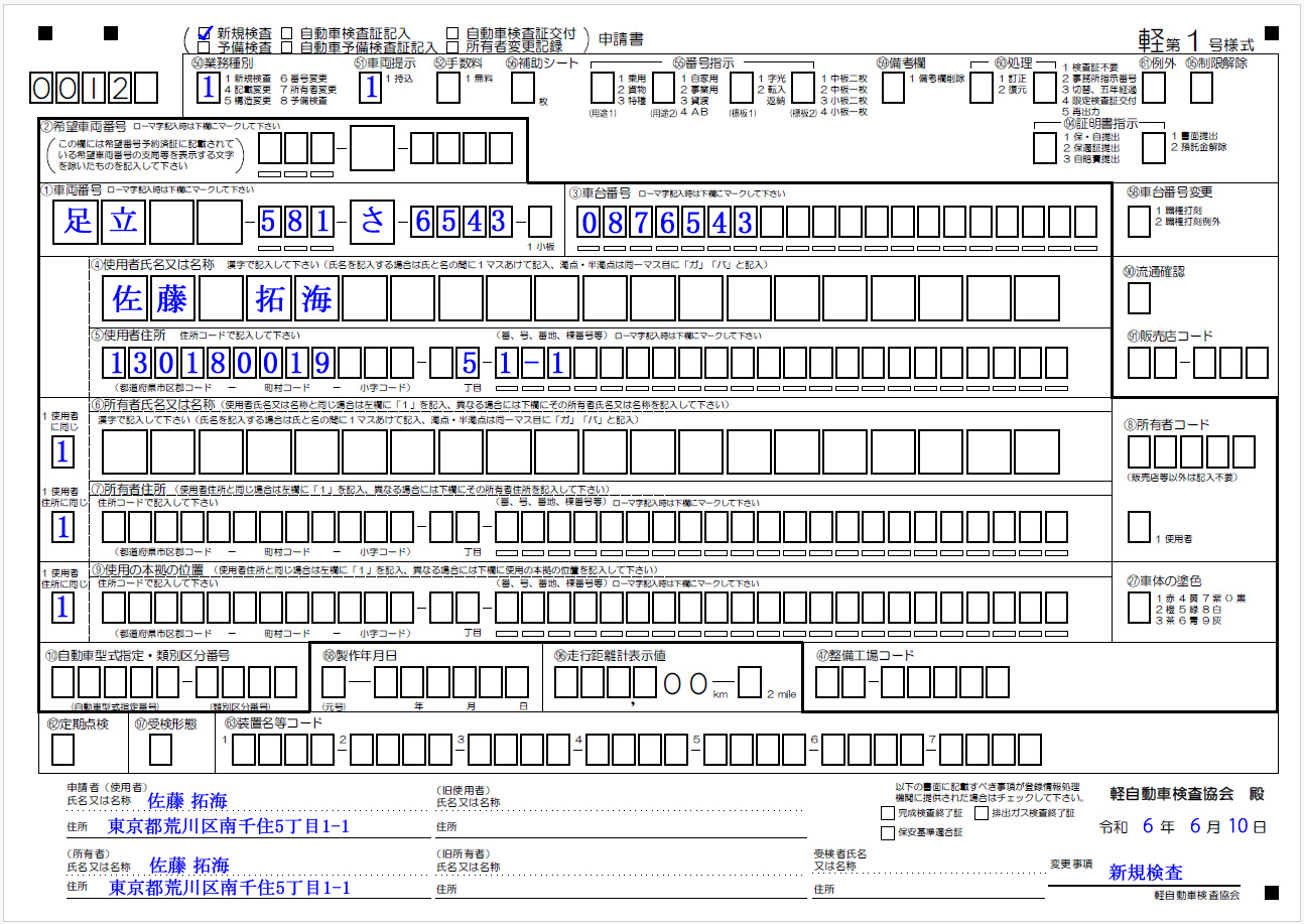 新規検査申請書記載例と解説