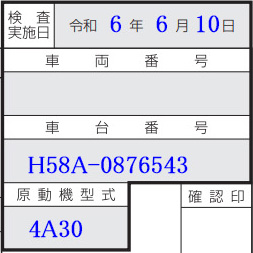 - 検査実地日-車両番号(新規不要)-車台番号-原動機型式: 自動車検査証返納証明書で確認。