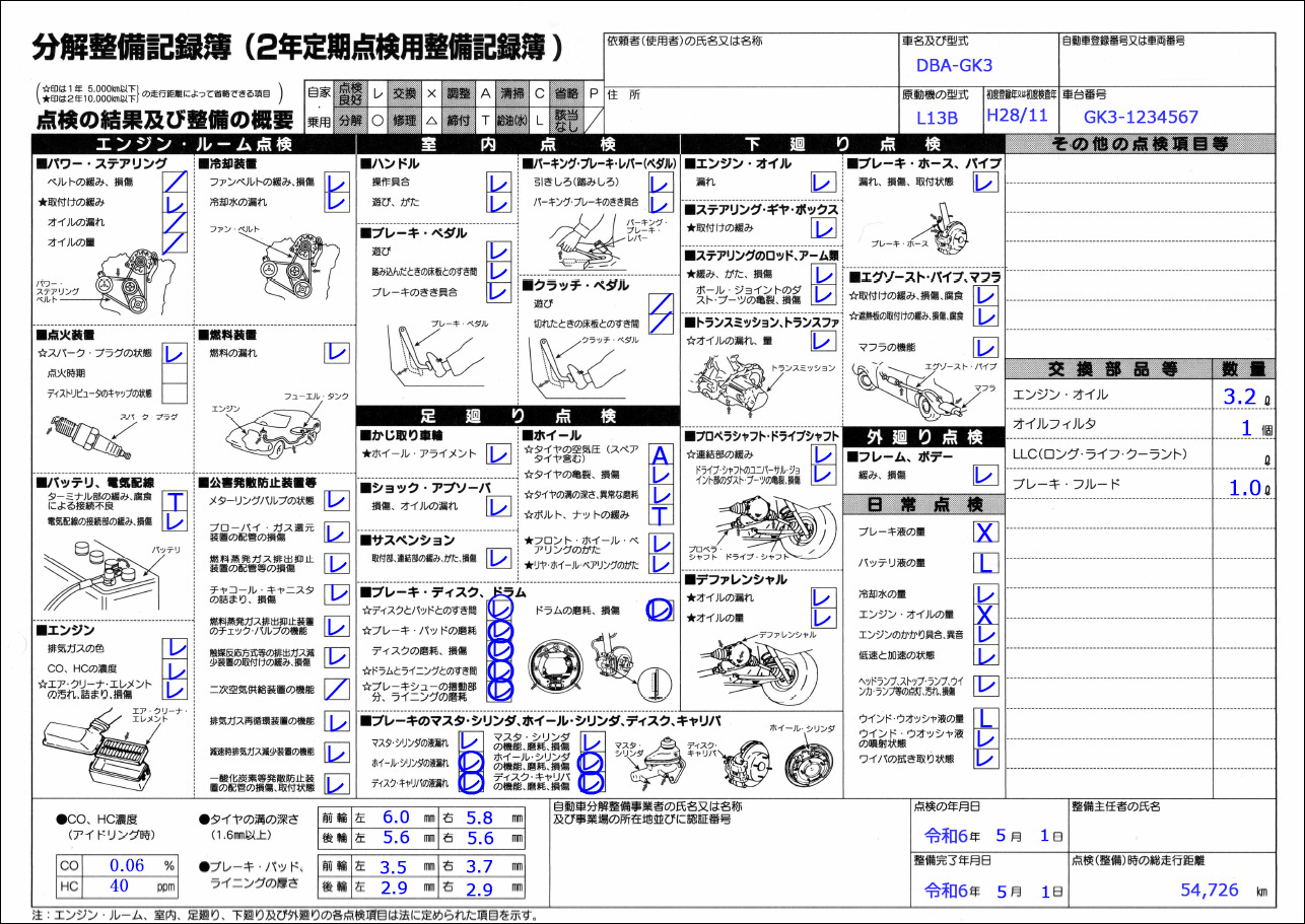 ※点検整備記録簿を必要な方は ➡ 2年定期点検整備記録簿