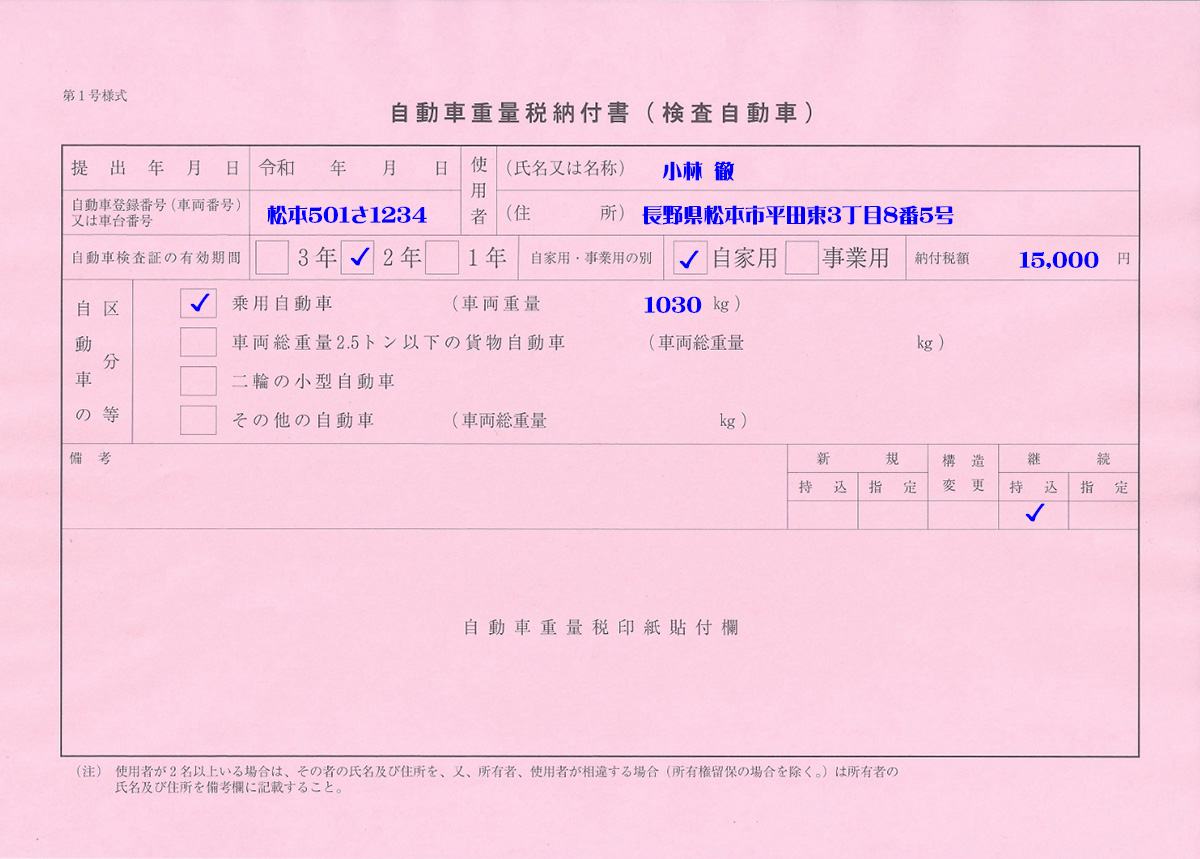 運輸支局及び自動車検査登録事務所窓口で配布しています。 - 自動車重量税納付書