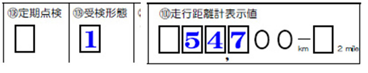 ■走行距離計表示値 10km単位以下の数値は「00km」として記載する 54726km⇒「54700km」