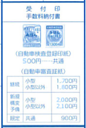 小型自動車 検査登録印紙500円 自動車審査証紙1,700円