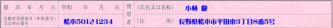 ■提出年月日-自動車登録番号「車検証で確認」-使用者-氏名-住所