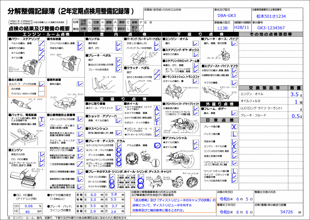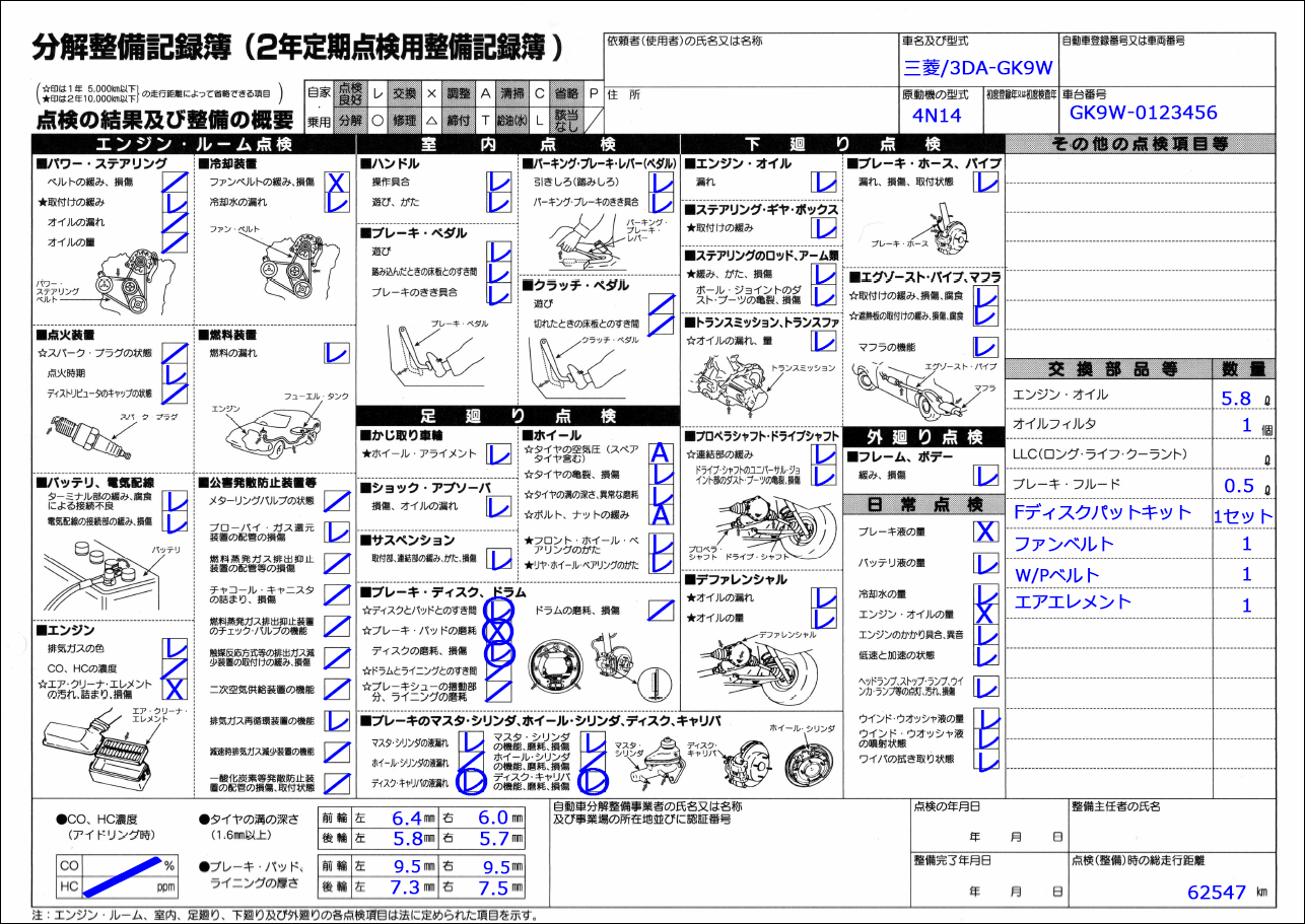 ※使用している点検整備記録簿を必要な方は⇒ 2年定期点検整備記録簿